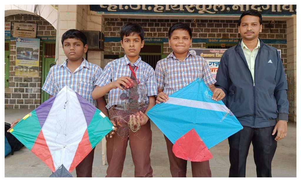 नांदगावला व्ही.जे. हायस्कूलच्या विद्यार्थ्यांनी नायलॉन मांजा गोळा करून पूर्ण केली शपथ.